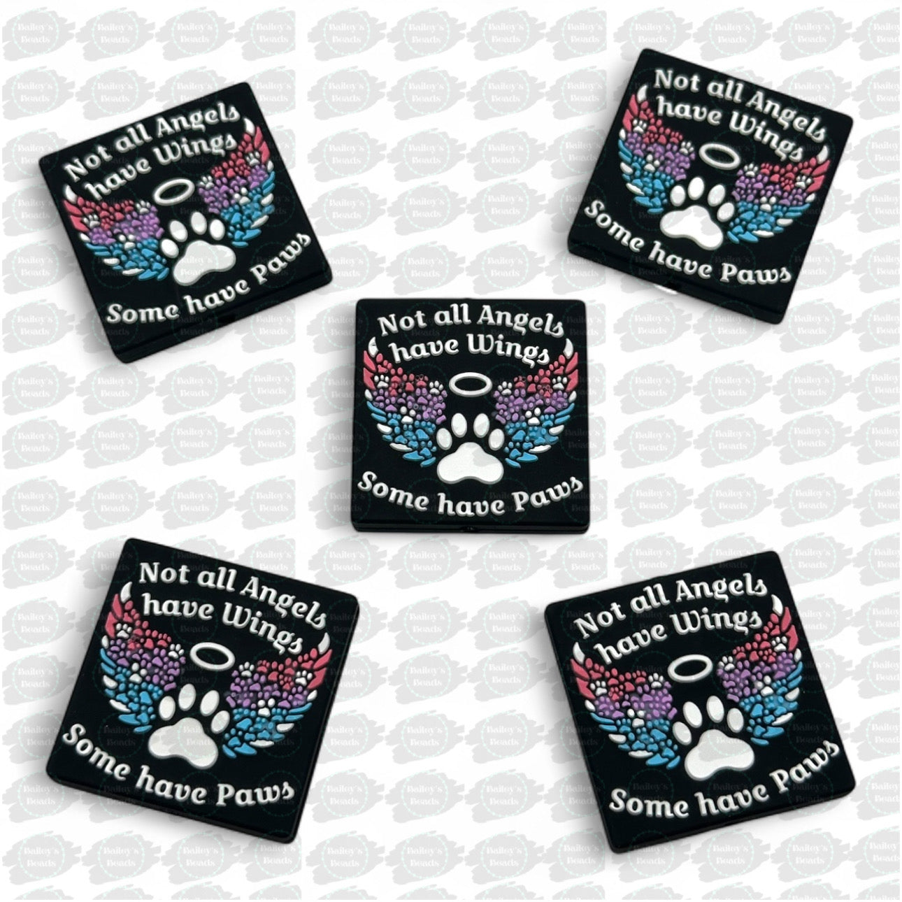 Celebrate the love of a furry companion with this heartfelt focal bead featuring the message: "Not all Angels have Wings, Some have Paws." Adorned with colorful paw-print wings, a halo, and a central white paw, this design is a touching tribute to pets who've left paw prints on our hearts.
