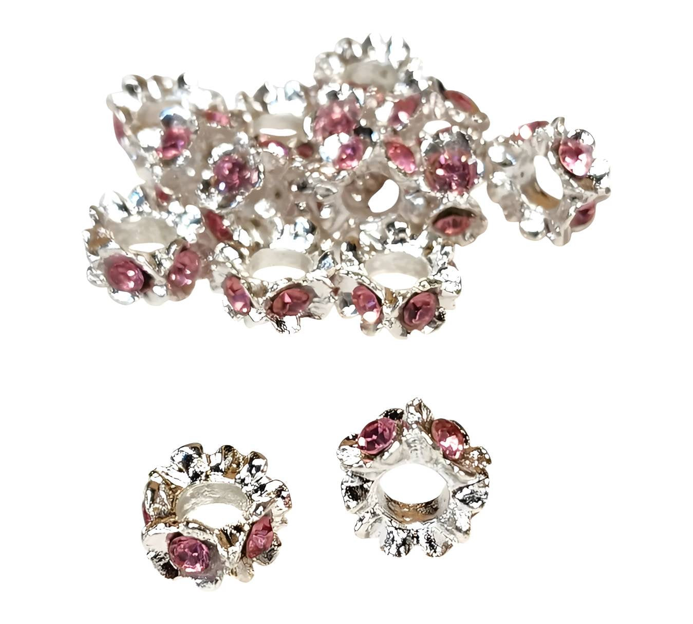 Pink Metal Rhinestone Large Hole Spacers (Rhinestone Spacers)